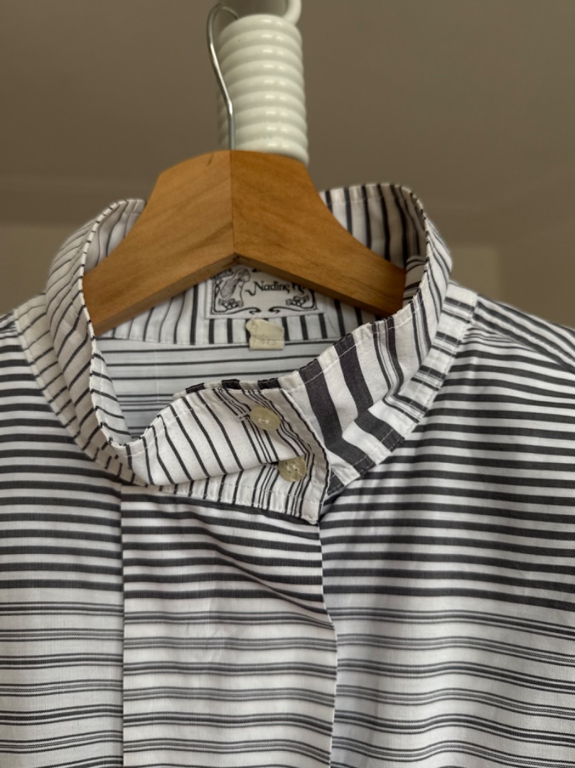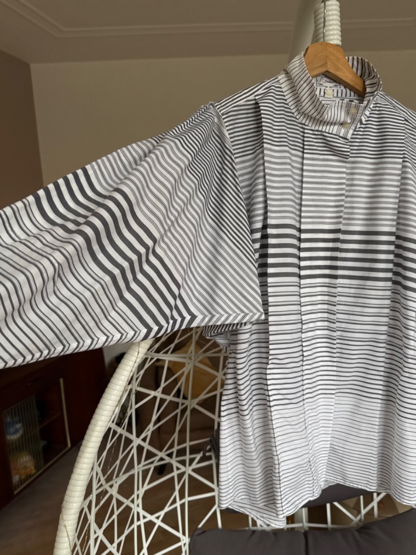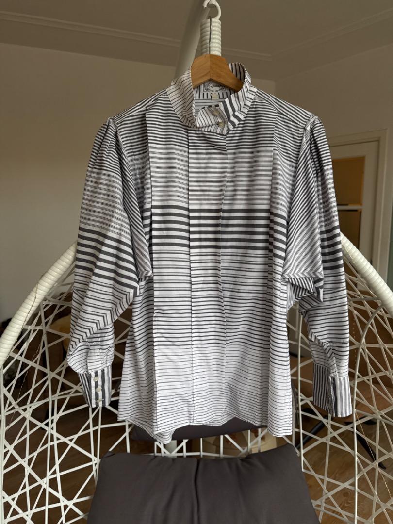Vintage blouse grijs wit wijde mouw