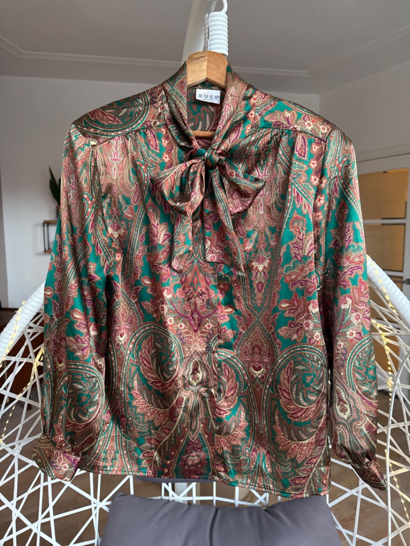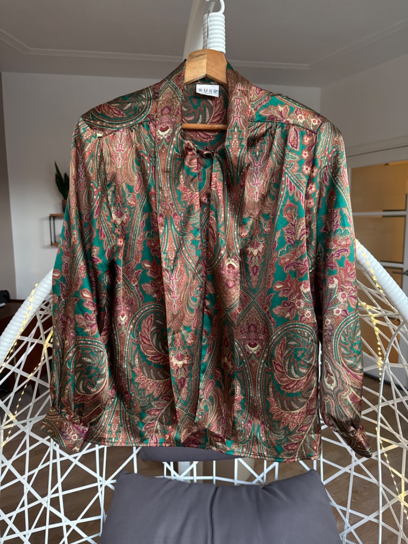 Vintage secretary blouse groen brons