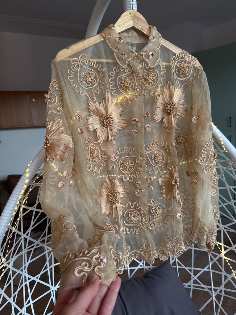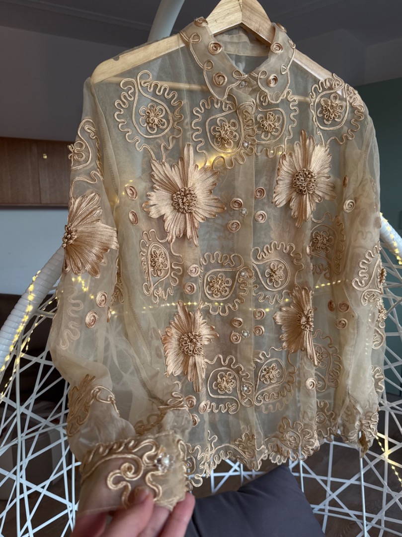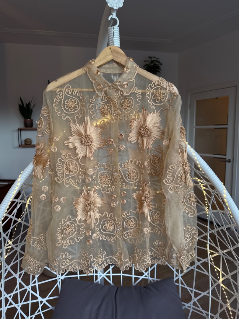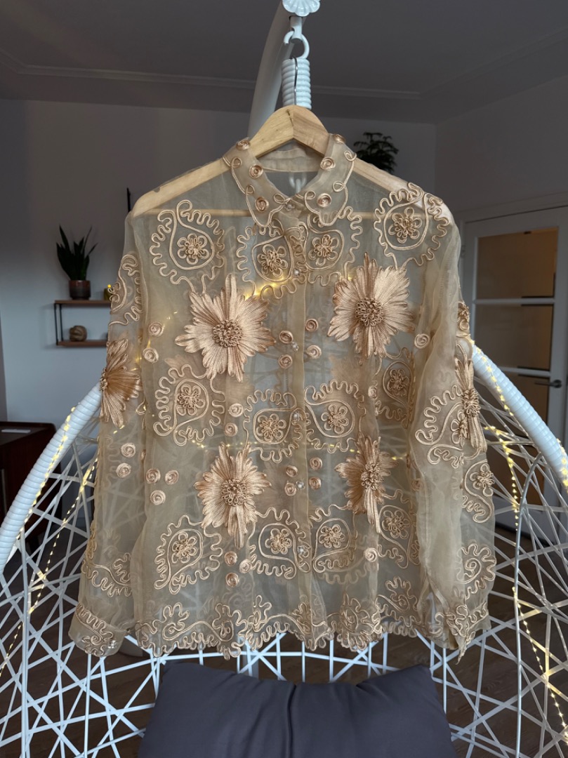Hele toffe doorkijk blouse met geborduurde bloemen.