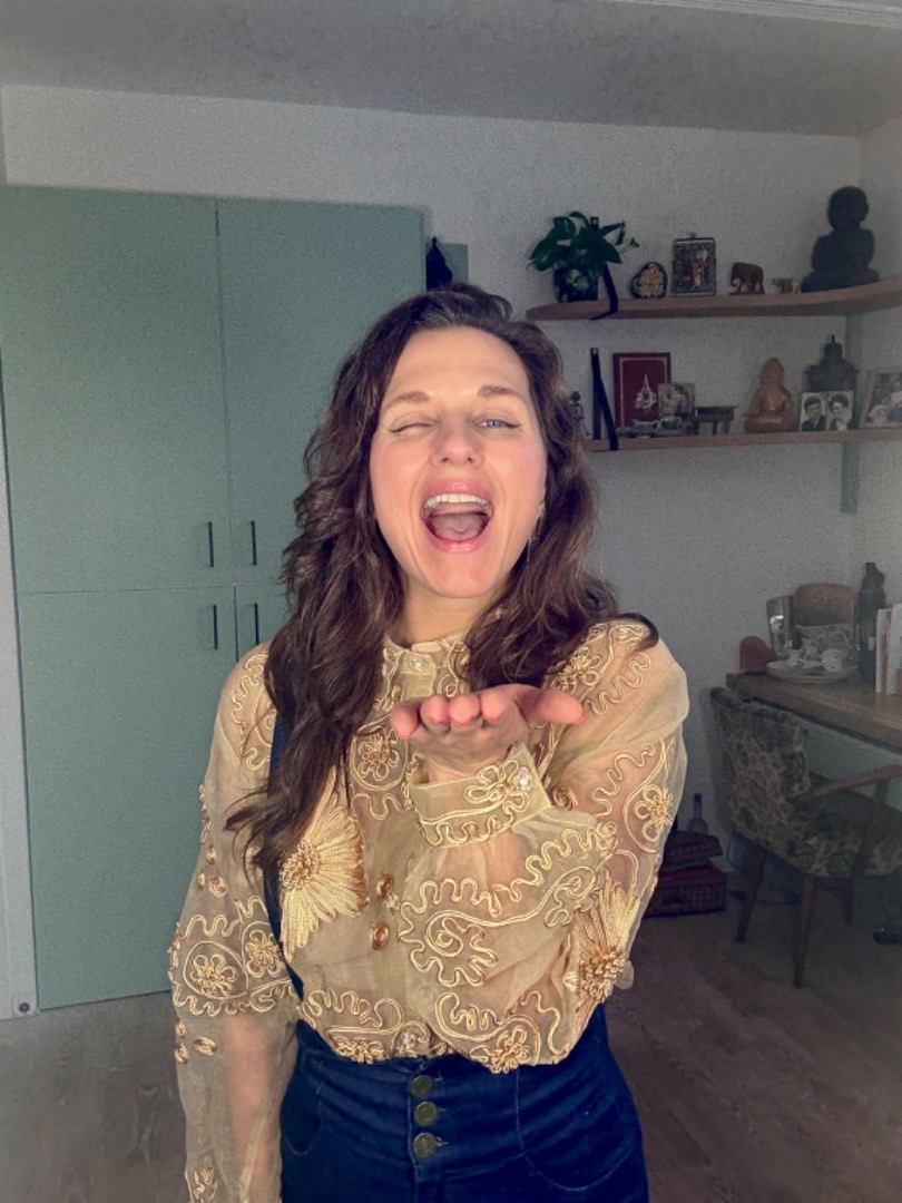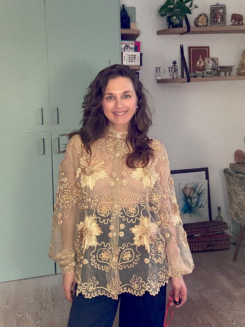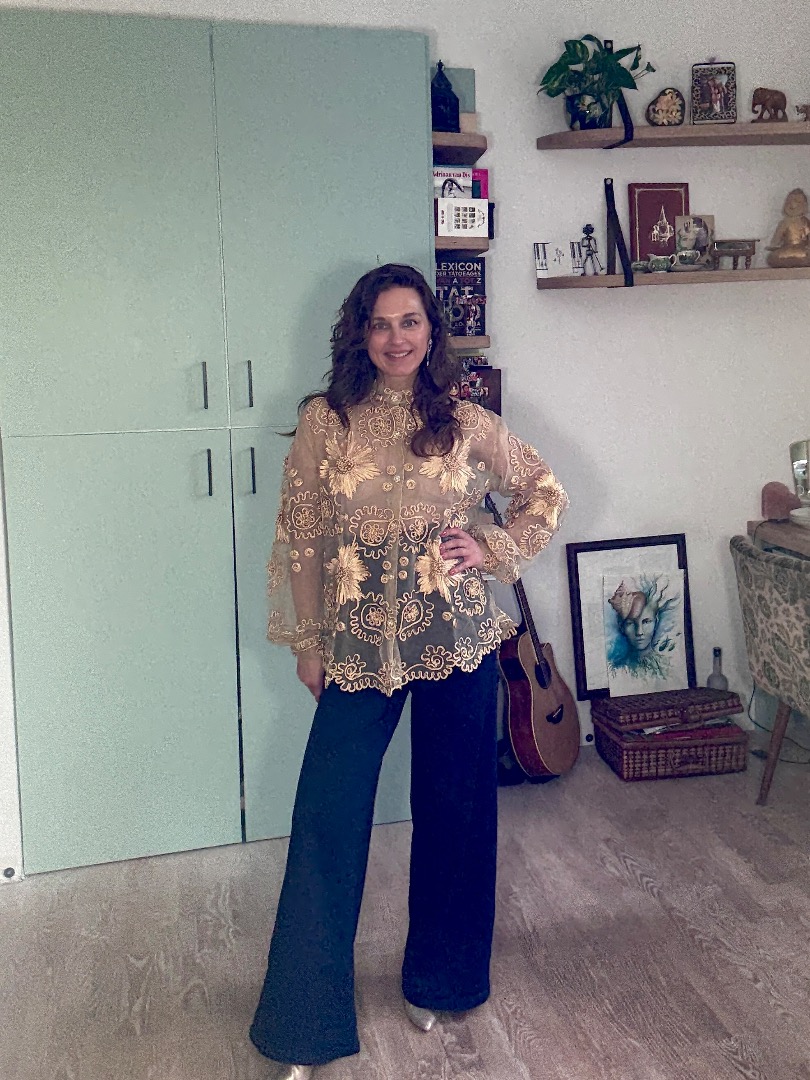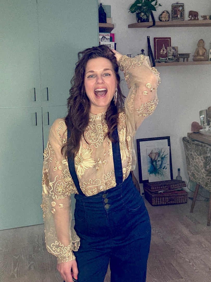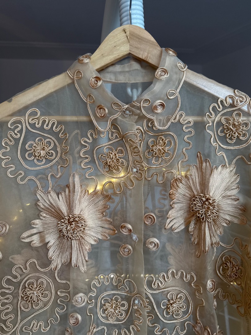 Hele toffe doorkijk blouse met geborduurde bloemen.