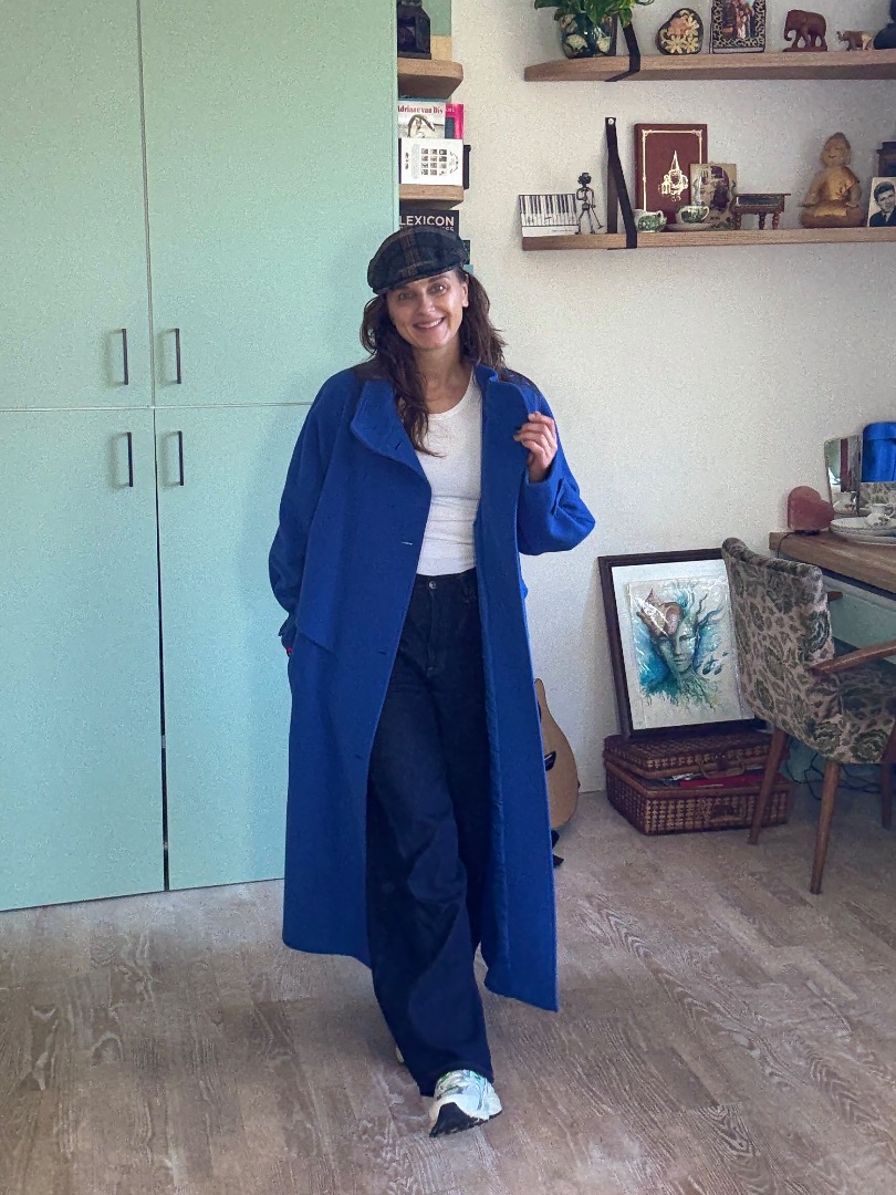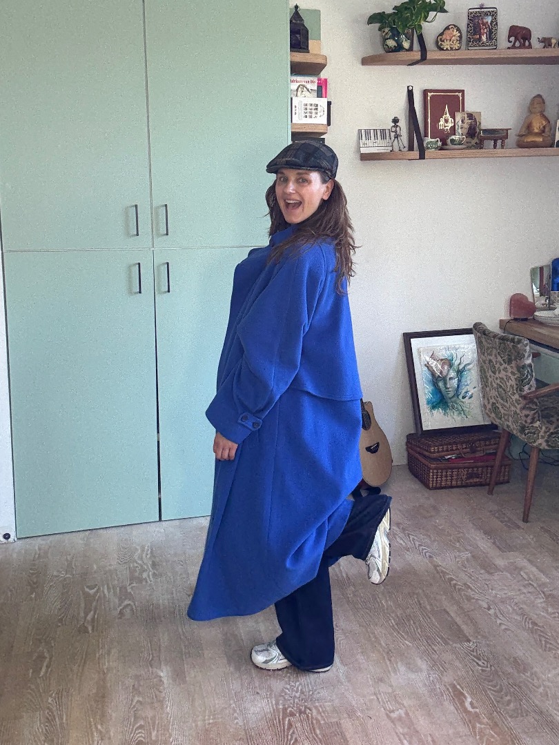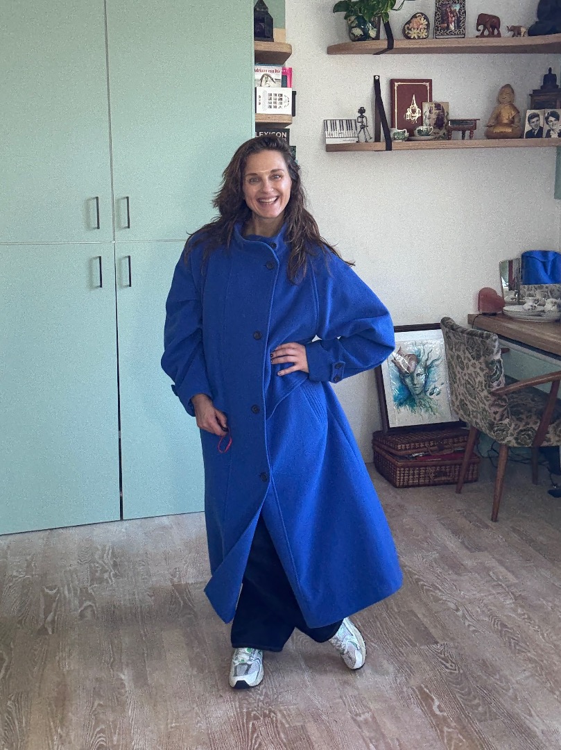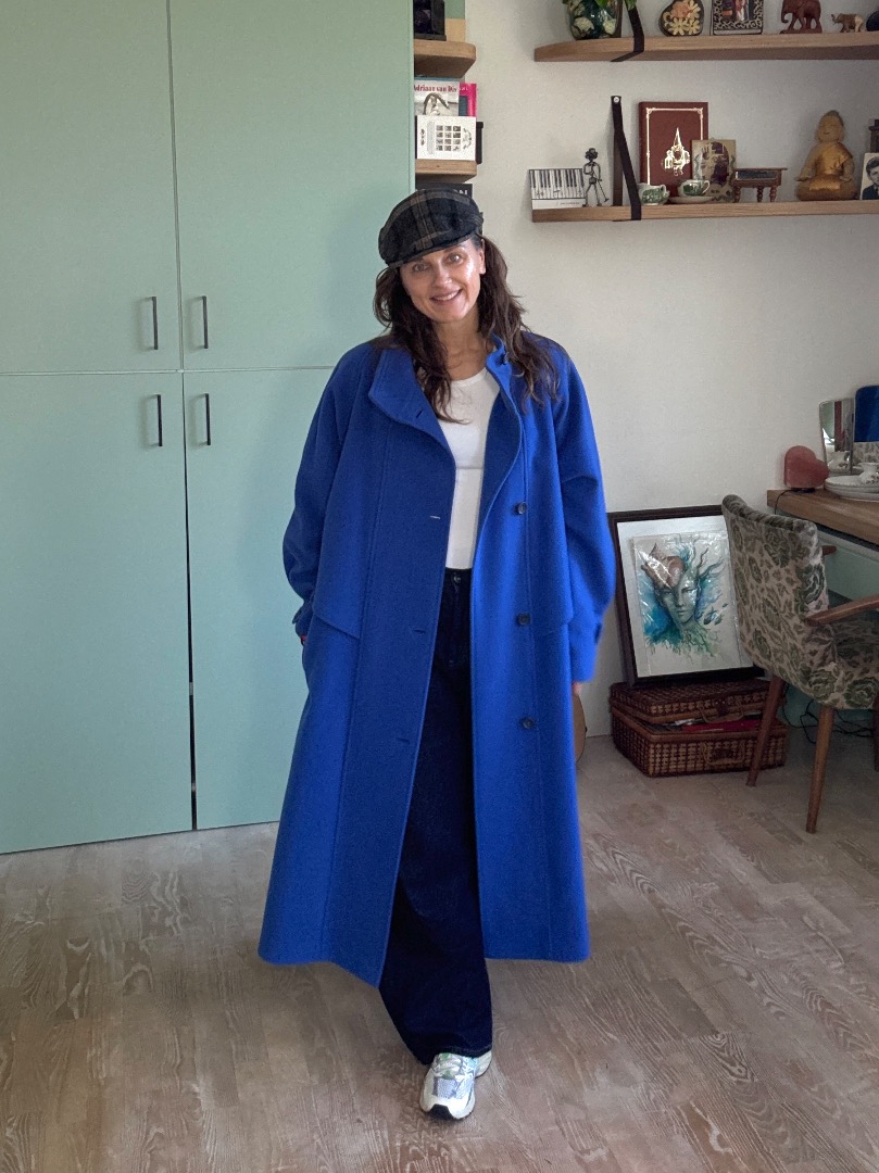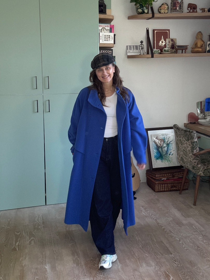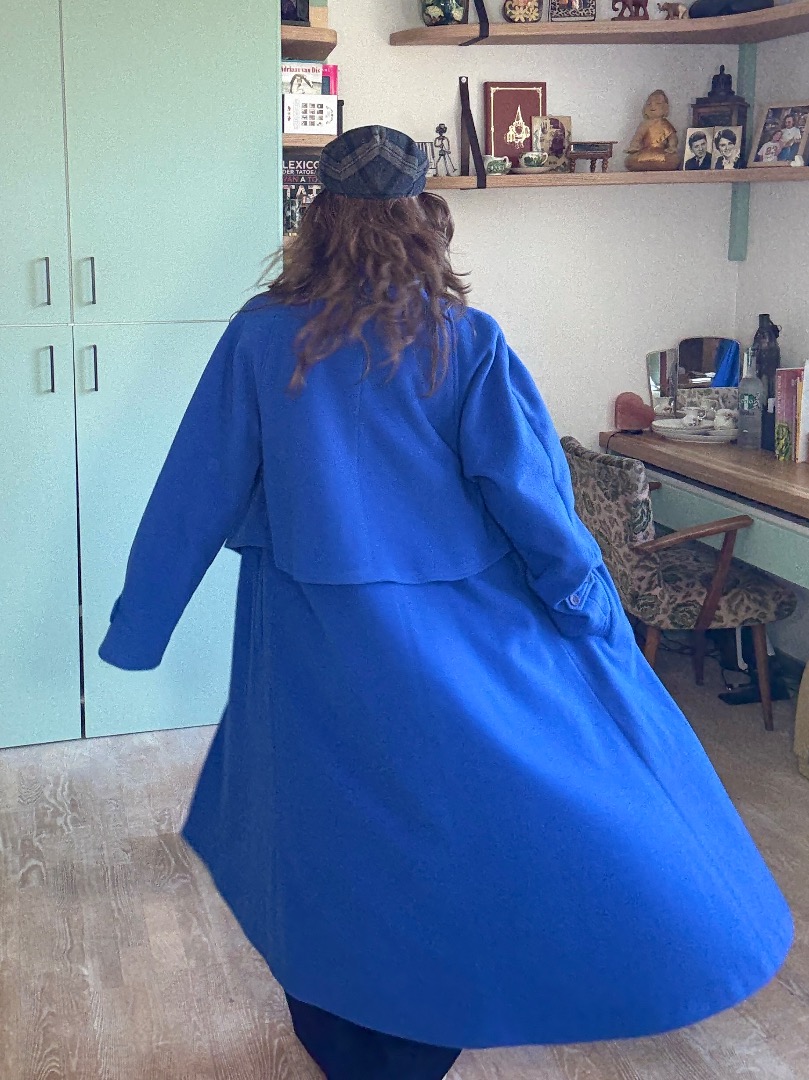 Warm in cobalt blue vintage coat