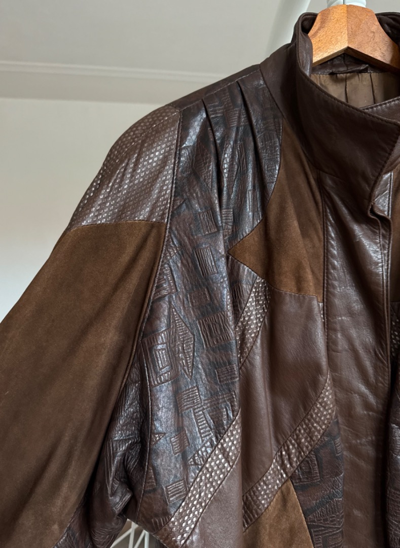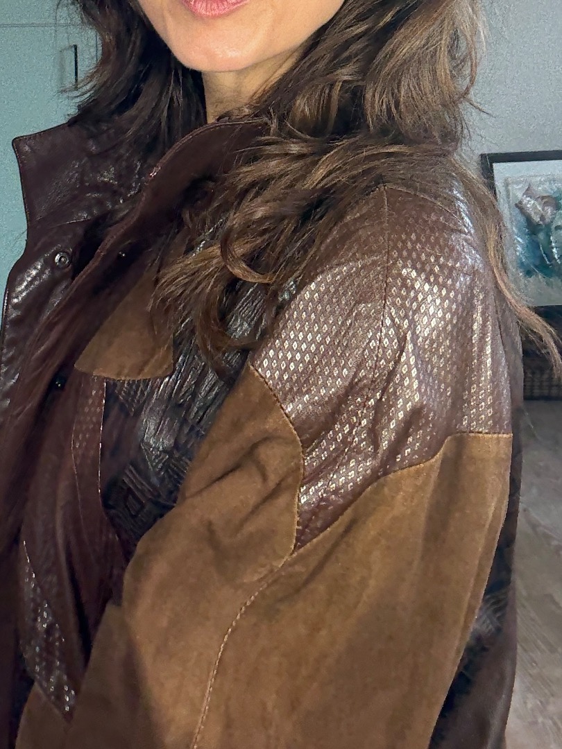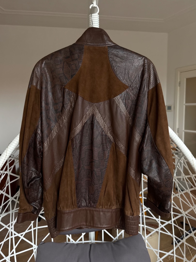 Combinatie van suede en leer in verschillende patronen met soms een subtiel glansje.