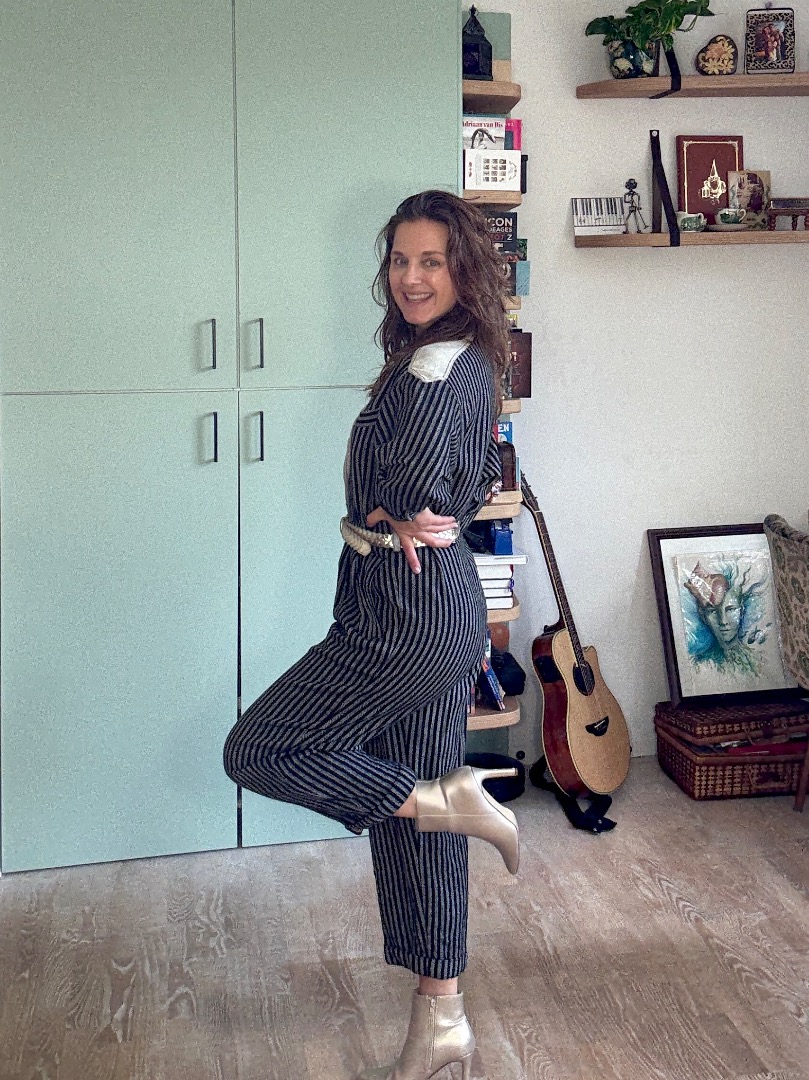 Vintage jumpsuit strepen wol