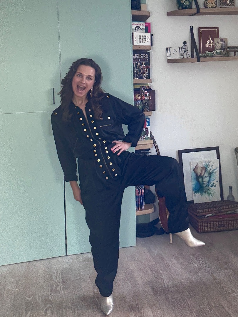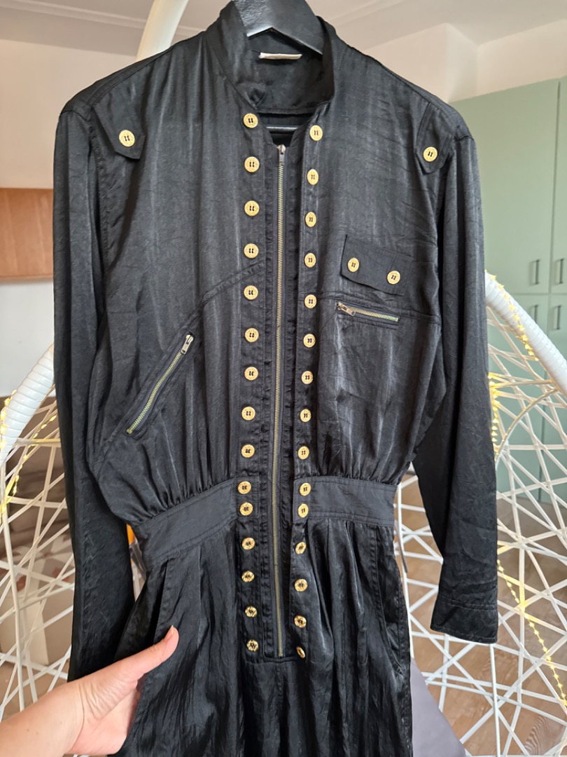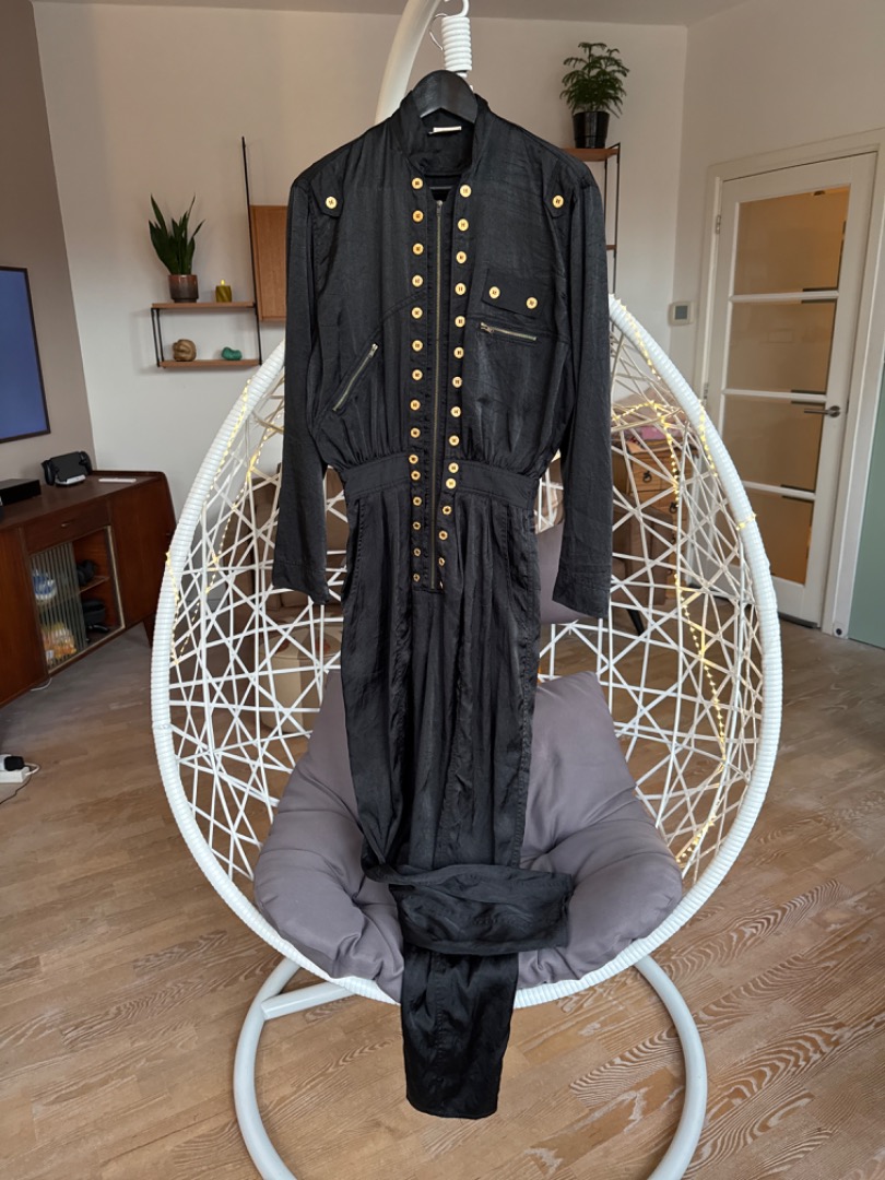 Lekker kek pakkie met gouden knoopjes en ritssluiting aan de bovenkant.