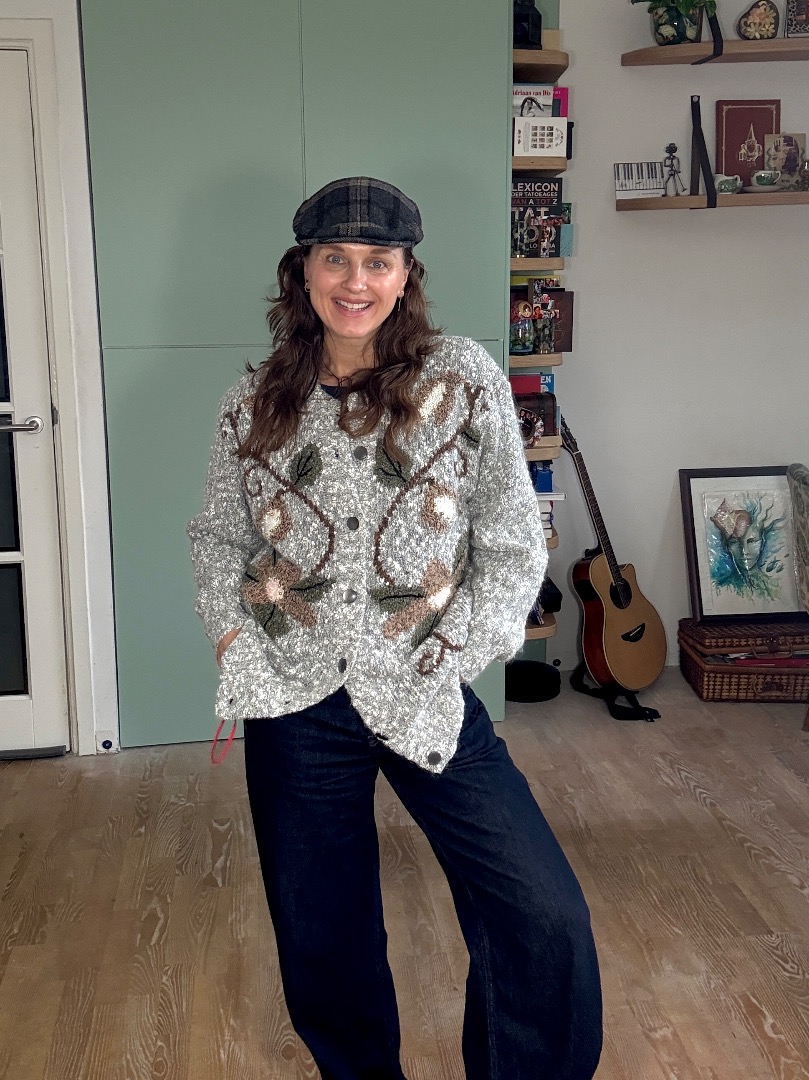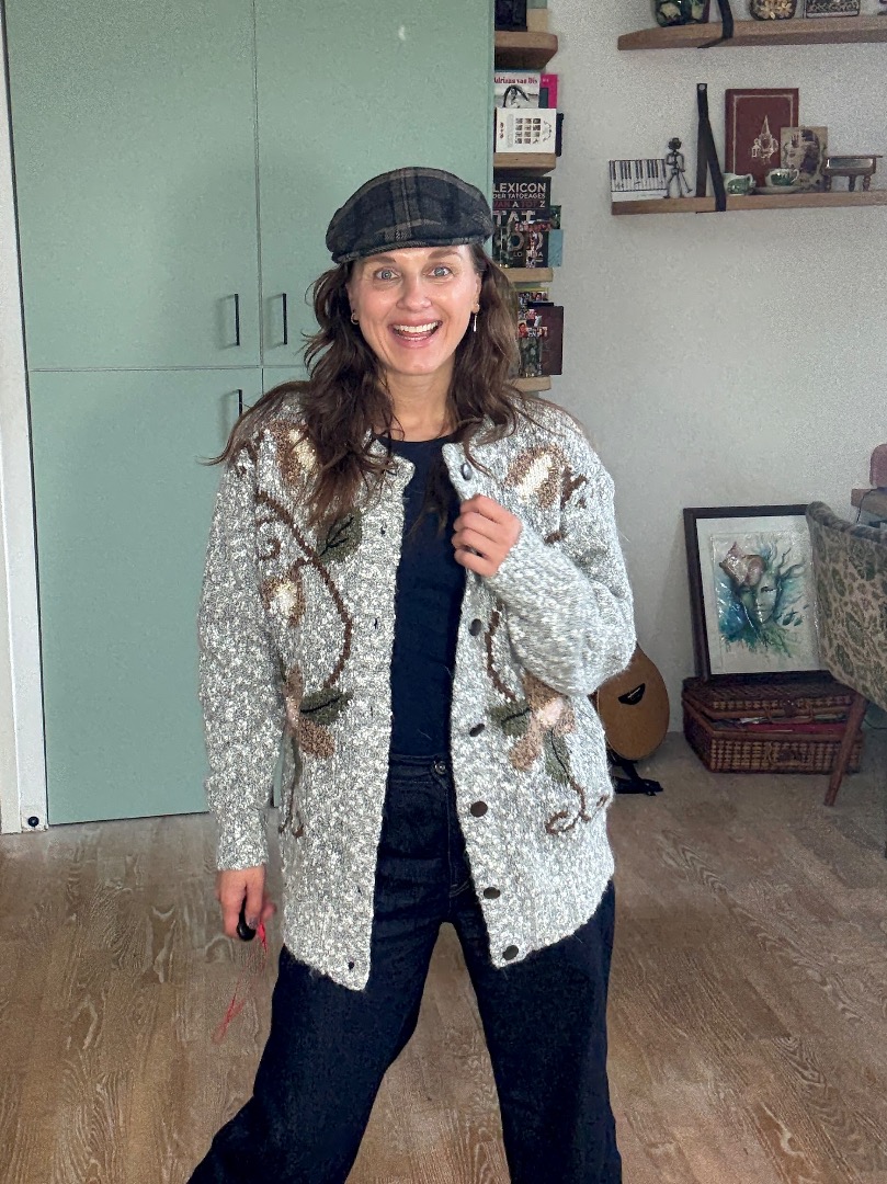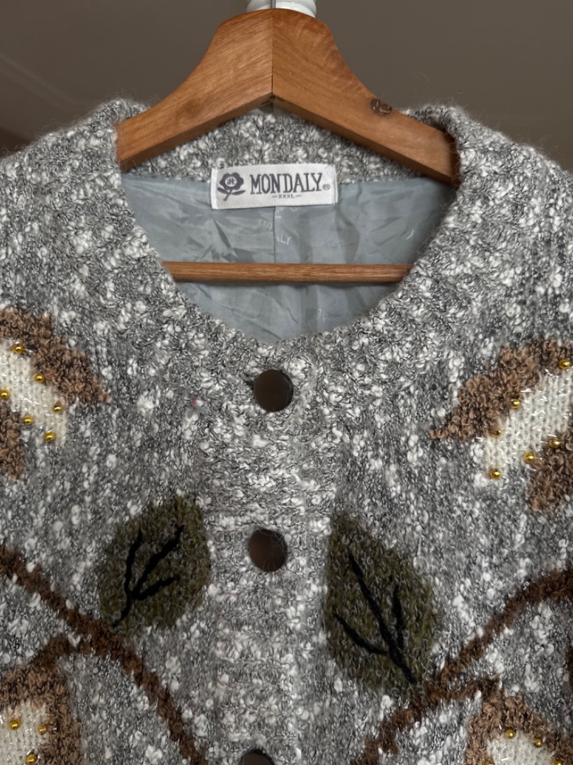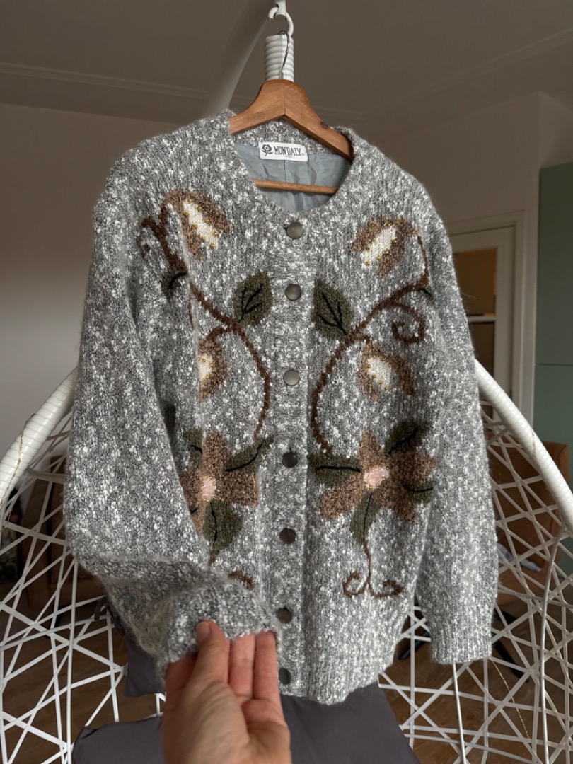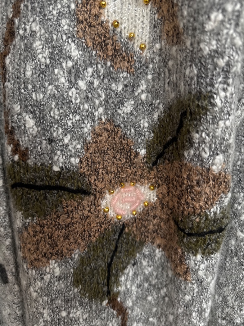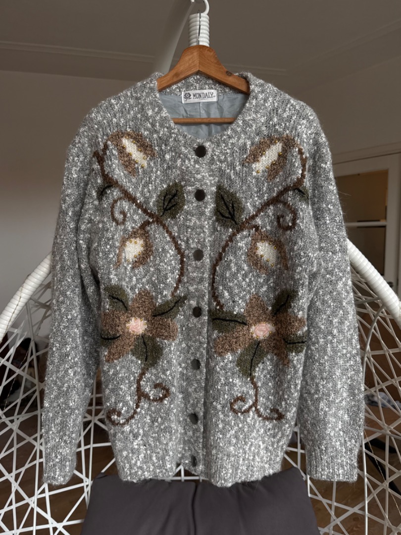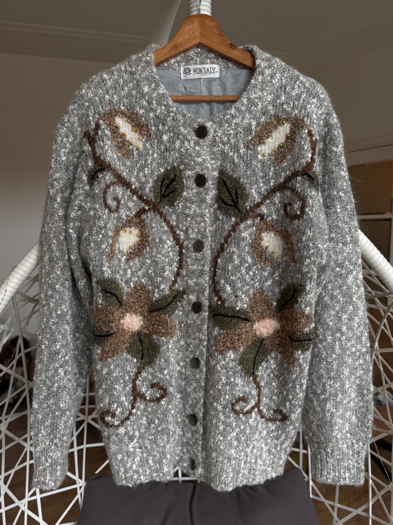 Soft grey with flowers vintage cardigan