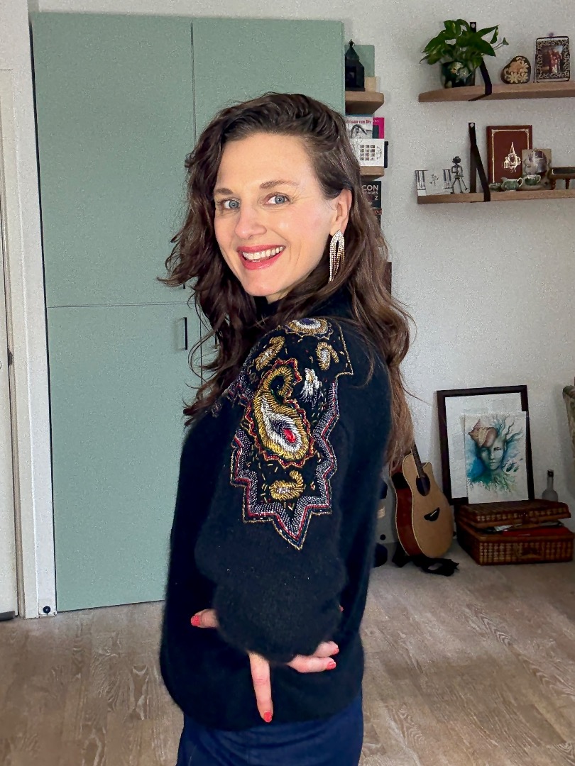 Materiaal: Zijde(56)/nylon(28)/angora(14)/lamswol(2)